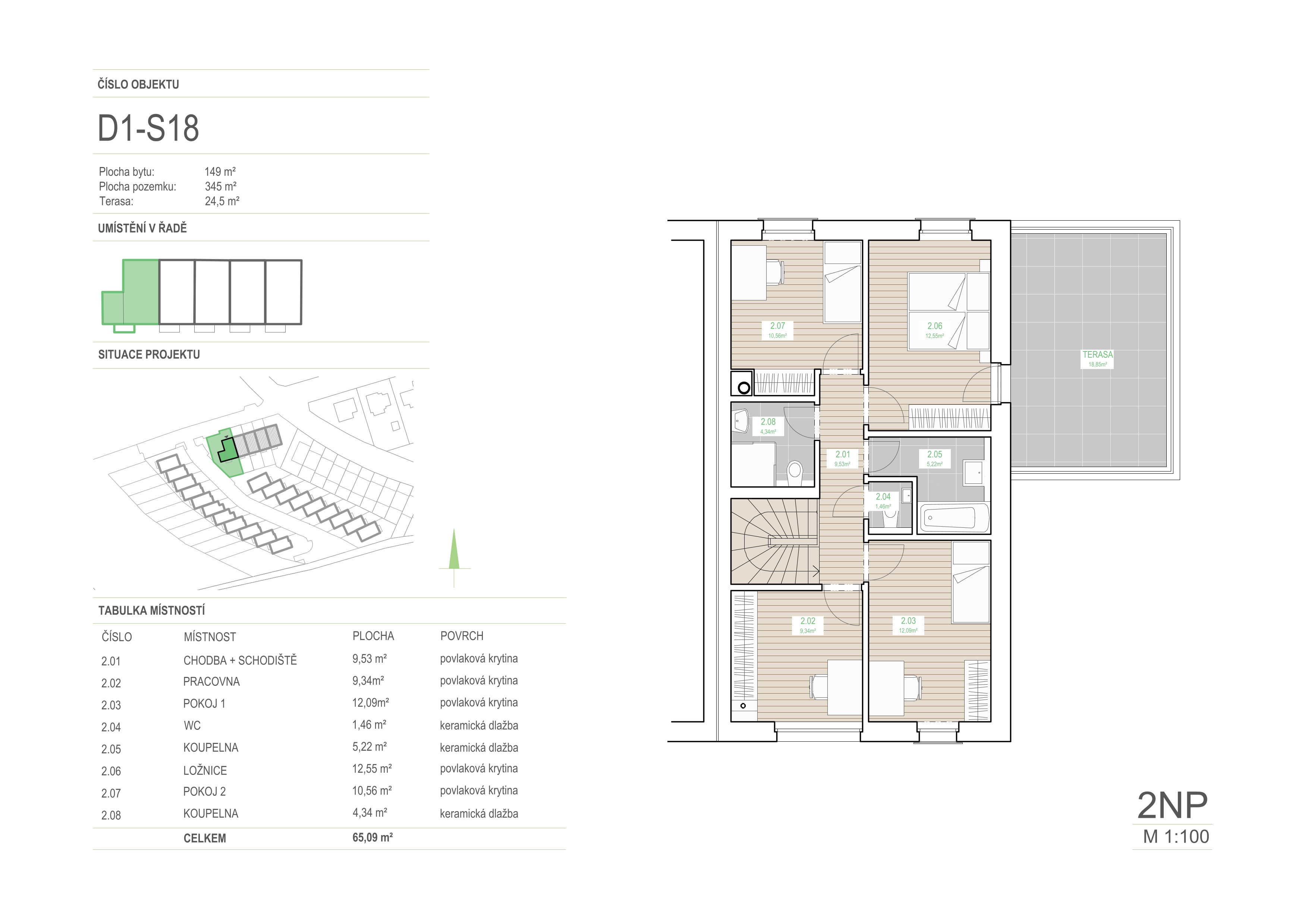 | 2.06 | ložnice | 12,55 | povlaková krytina |