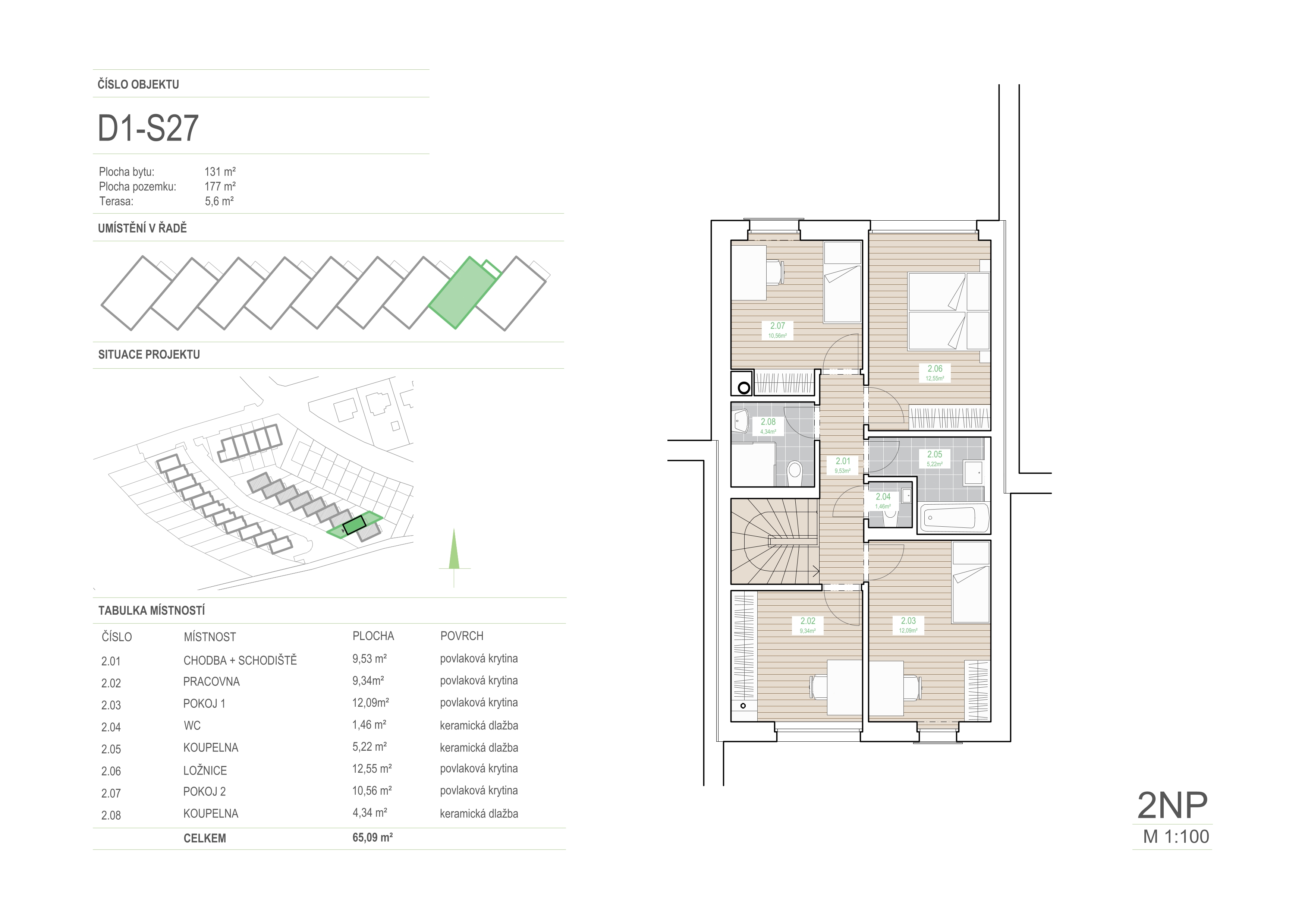 | 2.06 | ložnice | 12,55 | povlaková krytina |