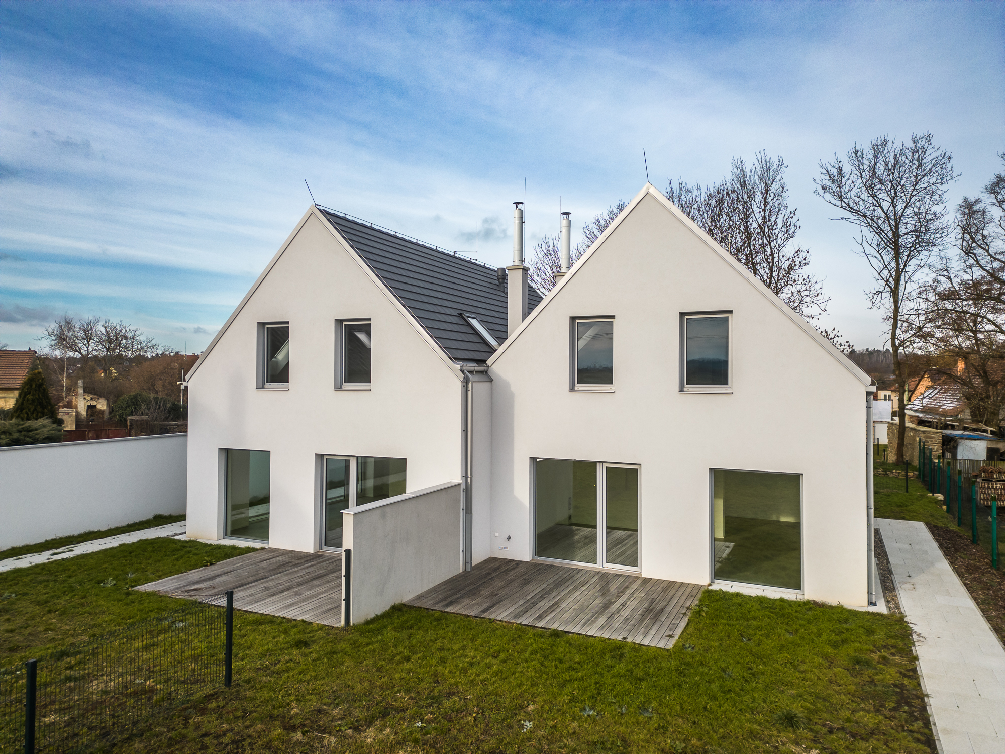 Rodinné domy se nachází v centru obce Nučice - 25 min jízdy autem od Prahy.